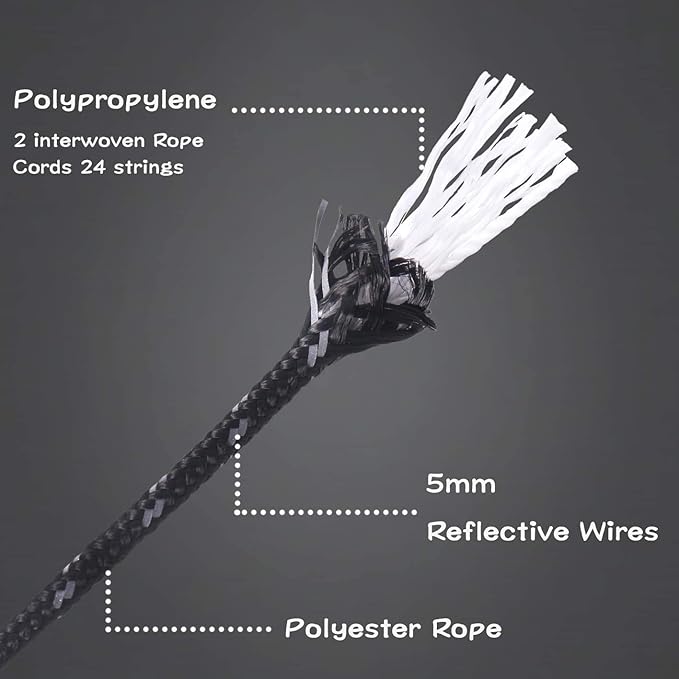 - STRONGTHEN REFLECTIVE: Different from the usual 1 reflective guy rope, HIKEMAN Reflective Rope has 2 interwoven reflective wires which giving greater visibility even if there is very little light