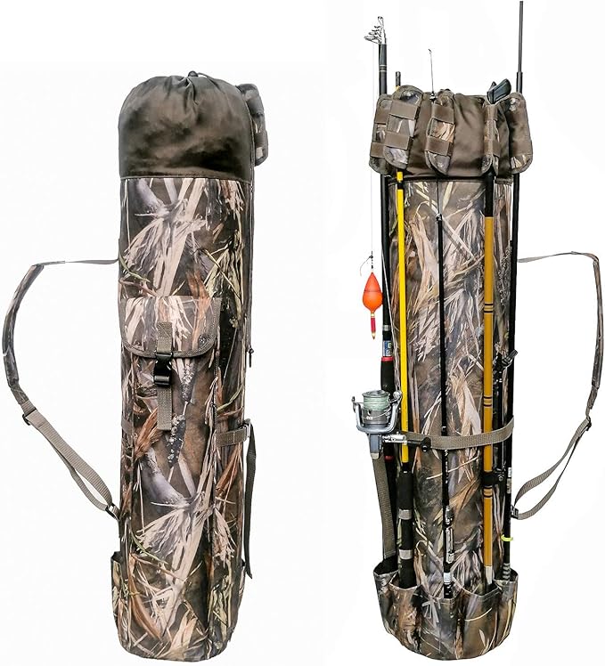 - Large Capacity Fishing Rod Case- Dimension: 123cm(48.4')'*34cm(13.4'') (L*D). 5 rods and reels pouch outside, 1 lateral pocket and 1 large interior compartment. Enough to hold your fishing rod, fishing reel, fishing bait and other fishing tools in order without any mess.
