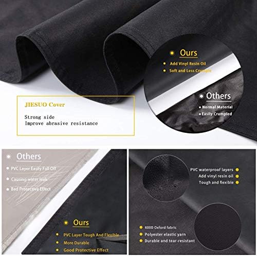 - Heavy duty Material - JIESUO grill cover is made of heavy duty 600D polyester elastic yarn, durable and tear-resistance. The PVC lining waterproof layer using an upgraded formula, adding a specific proportion of vinyl oil, making the waterproof layer soft and less crumple, more durable than other similar products.