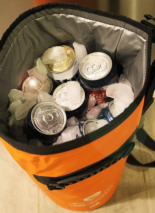 - Portable Cooler Dry Bag – Can be used as a kayak cooler or waterproof dry bag. Useful for beach days, rafting, boating, hiking, biking, camping and fishing. A great gift for family or friends. 15L capacity - Holds up to 18 cans or 5 wine bottles plus ice.