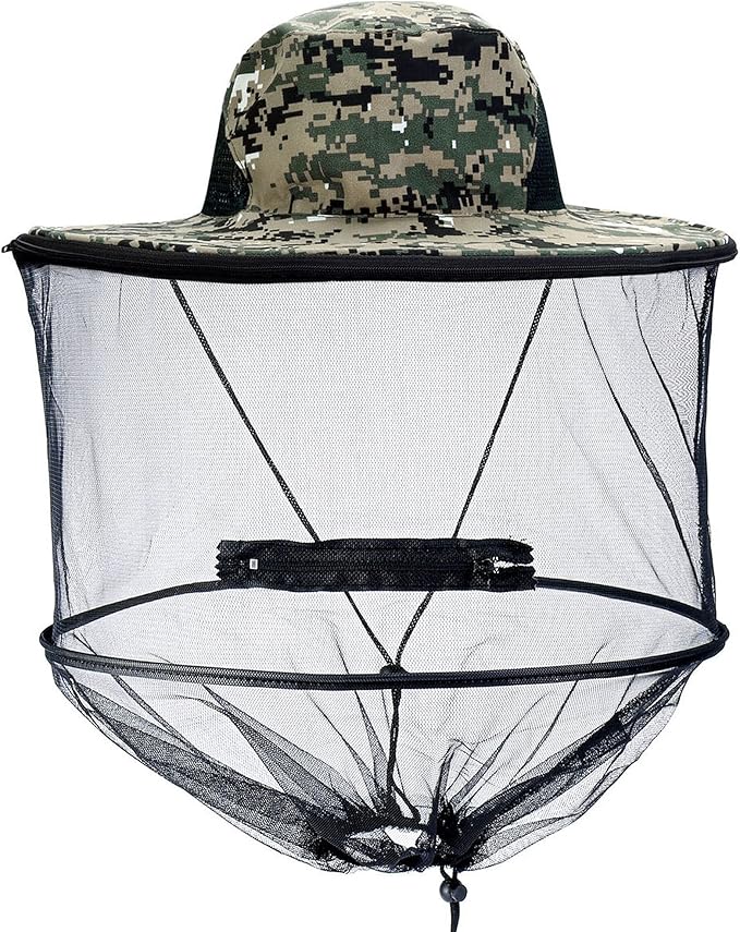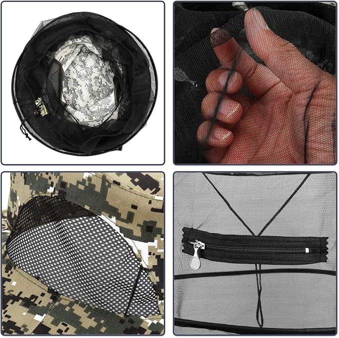 Mosquito Head Net Hat with Removable Mesh Hidden Netting, Camouflage Design with Zipper Net for Outdoor Fishing Gardening Hiking Face Cover (Digital Camouflage)