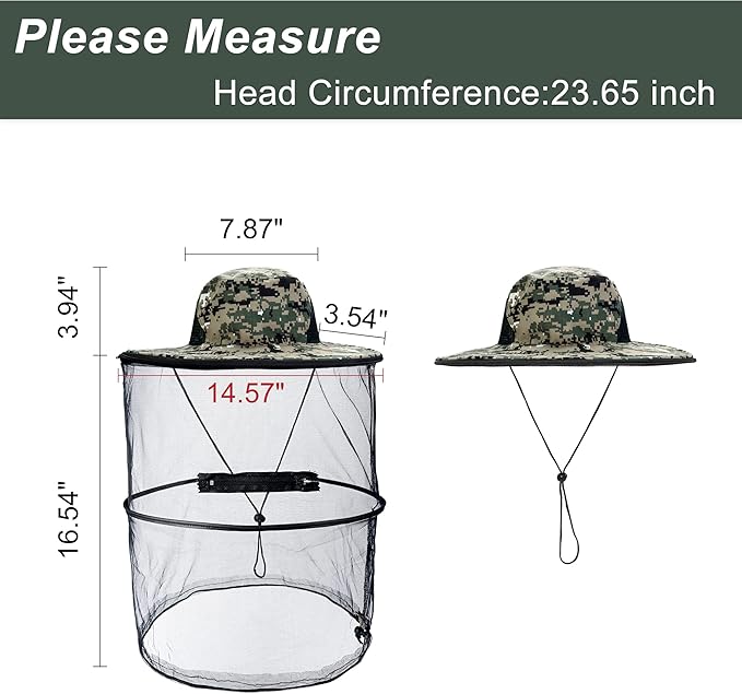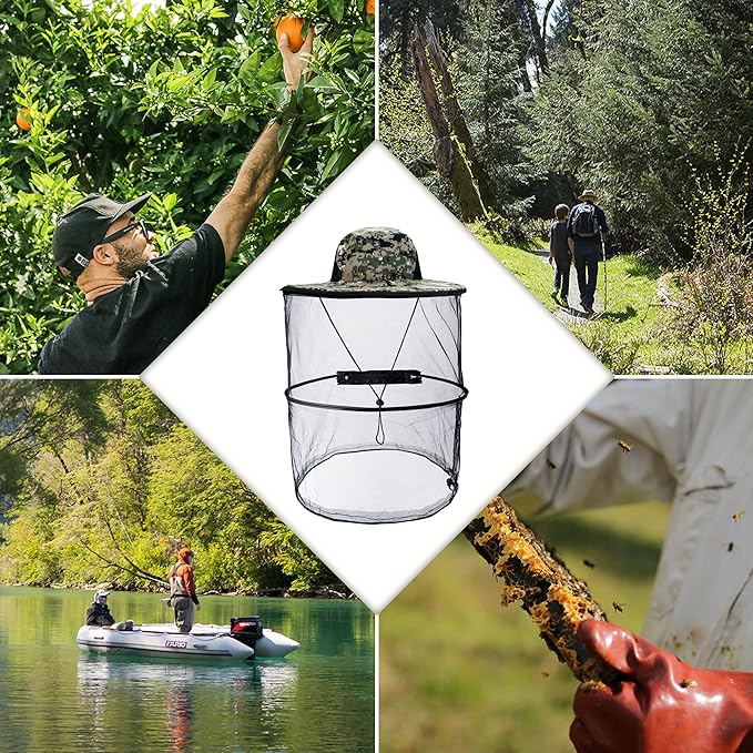- ✔ Mosquito Head Net Hat: The neck buckle netting is designed to prevent the penetration of mosquitoes, bugs, bees and other insects.