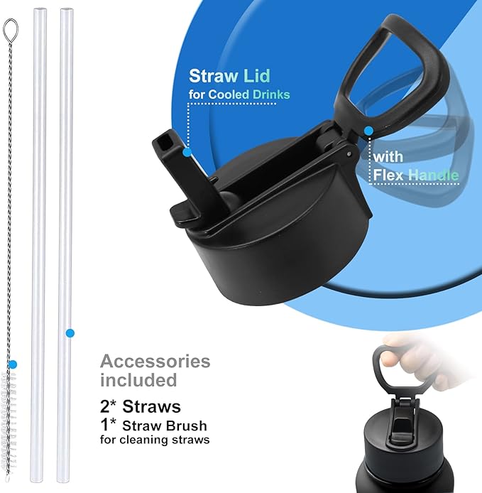- Perfect Choice -Reusable Thermos water bottle:Great for go-to workouts, daily use,work, school, home, hiking, biking, boating,the gym and so on. Travel Friendly【What you get:】 1 x 32oz water bottle, 1 x lid, 2 x straws, 1 x straw brush, 1 x packing box.