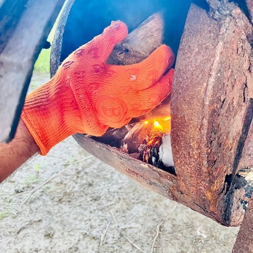 Oven Gloves 932°F Extreme Heat & Cut Resistant Oven Mitts with Fingers for BBQ, Cooking, Grilling, Baking – Accessory for Fire Pit, Camping, Fireplace & More - Orange Bitcoin Gift