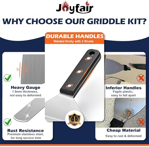 18Pcs Griddle Accessories Kit, Joyfair Stainless Steel Flat Top Grilling Spatula Accessory Tools Set with Basting Cover Burger Press, for Outdoor BBQ Teppanyaki Hibachi Cooking (ABS Handles)