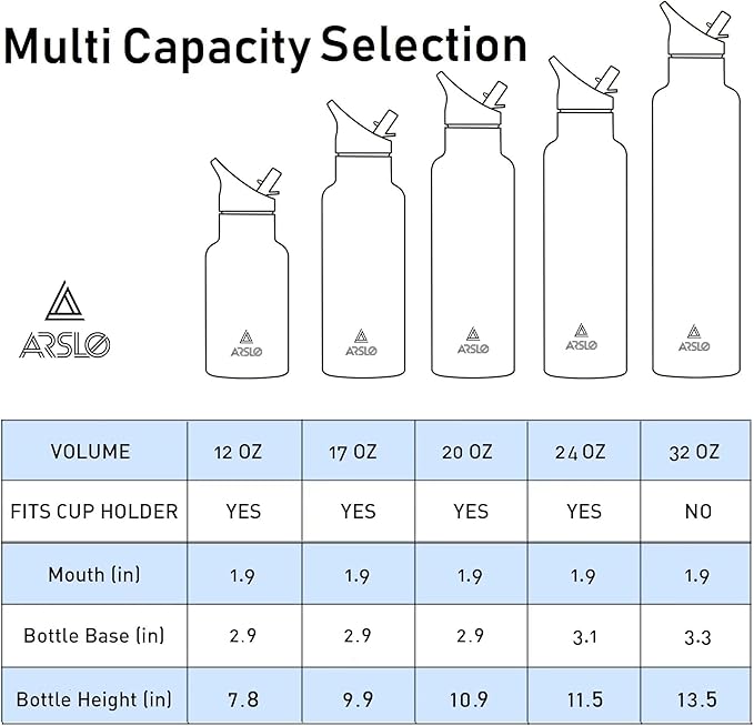 - Grade 18/8 Stainless Steel: Arslo water flask is made from premium high grade 304 stainless steel passed FDA test, which is fully resistant to oxidation and corrosion. More durable. A healthy life with Arslo