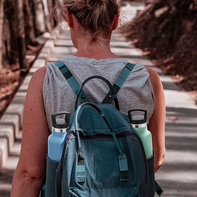- Thoughtful Lid Design(bpa free): Standard mouth stainless steel water bottle has two different stlyes of lids, straw lid and handle lid with strainer so you don't have to worry about ice slipping into mouth. Vacuum water bottle comes standard with an attached PP material screw cap that creates on air–toght vacuum send and is great for travel and outdoor use.