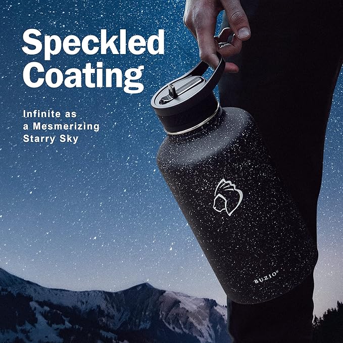 - Food-Grade Material: Made of non-toxic BPA-free plastics & durable food-grade 18/8 stainless steel, BUZIO water bottle is puncture resistant, hard to oxidize, and able to prevent flavor transfer. Meanwhile, the BUZIO powder-coating technology and wide mouth (2.16 inches) ensure easy gripping, cleaning, and ice filling.