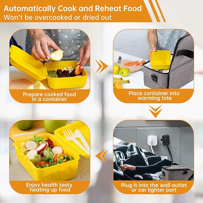 - ✅ PORTABLE AND CONVENIENT: This portable warming electric lunch box comes in a collapsing design with an adjustable shoulder strap and carrying handle. You can put the portable self-heating warmer car lunch bag in your backpack and carry it to any place. It is a great choice for taking to in a car, truck, or office, perfect for truckers, patrolmen, nurses, and more.