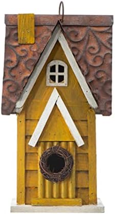 Glitzhome 12" H Yellow Distressed Solid Wood Cottage Birdhouse Hanging Bird House for Outdoors