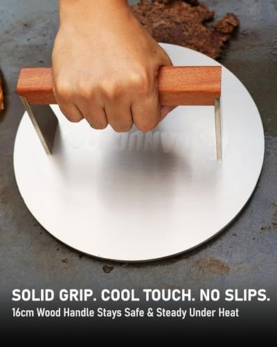 - BEYOND SMASHBURGERS, ENHANCE EVERY DISH: Our heavy-duty grill press ensures food stays close to the heat, cooking evenly and boosting flavor development, especially in protein-rich foods like steak, bacon, chicken, and fish