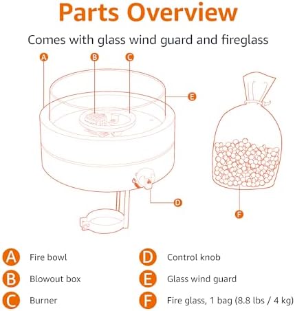 - 9,000 BTU stainless steel burner, flame igniter, and fire glass offer the ease of a fire without messy ashes
