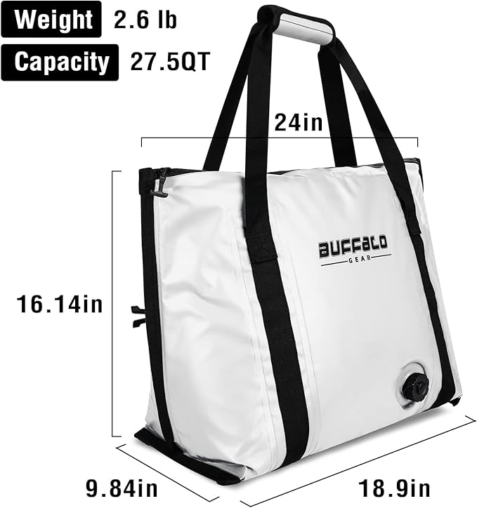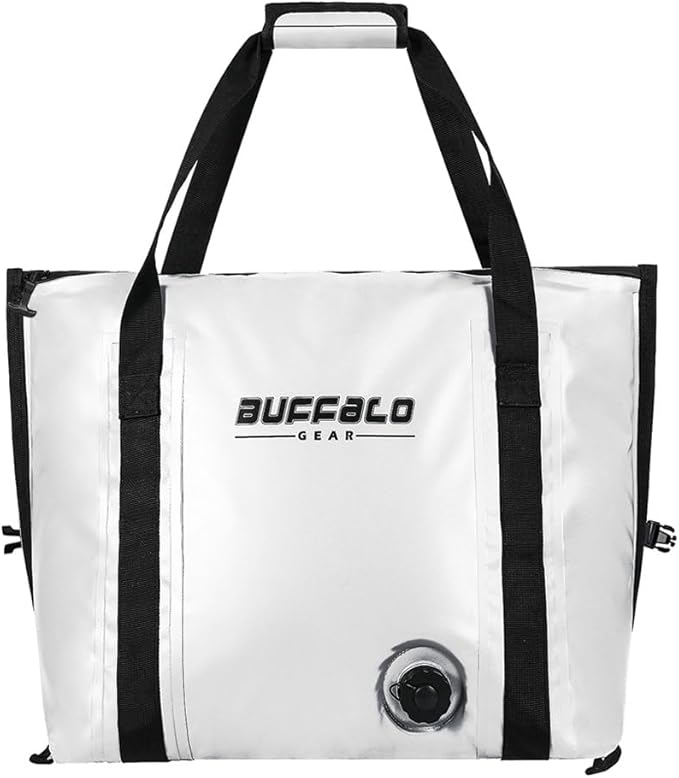 Buffalo Gear Insulated Fish Cooler - 27.5QT 58QT Waterproof Flat Bottom Bag, Leakproof and Fishing Kill Bag