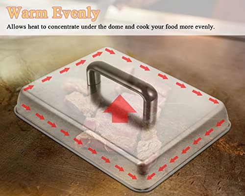 13 x 9 Inch Rectangular Basting Cover and Grill Press Kit for Blackstone Accessories, Universal BBQ Melting Dome Steaming Lid & Smash Burger Press for Flat Top Teppanyaki, Dishwasher Safe