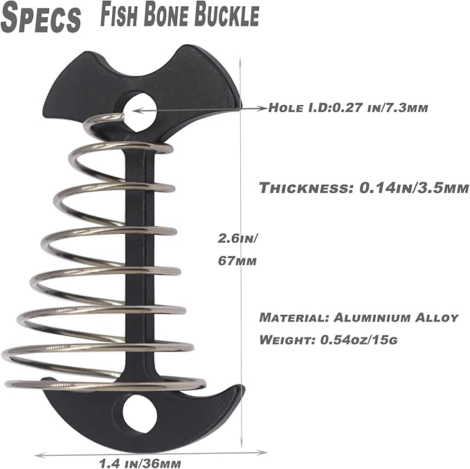 - Fishbone Anchor Rope Buckle Design- Make tie the tent strap easy to slip between gaps in a platform,use the cracks to fix the tent wind rope,hold firmly.Great for deck furniture cover