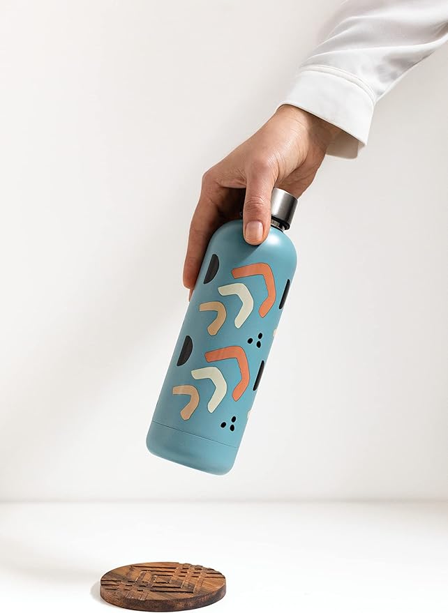 - 17-ounce reusable drink bottle for hot and cold beverages. A distinctive cylindrical shape and artist-rendered design that stand out from the rest