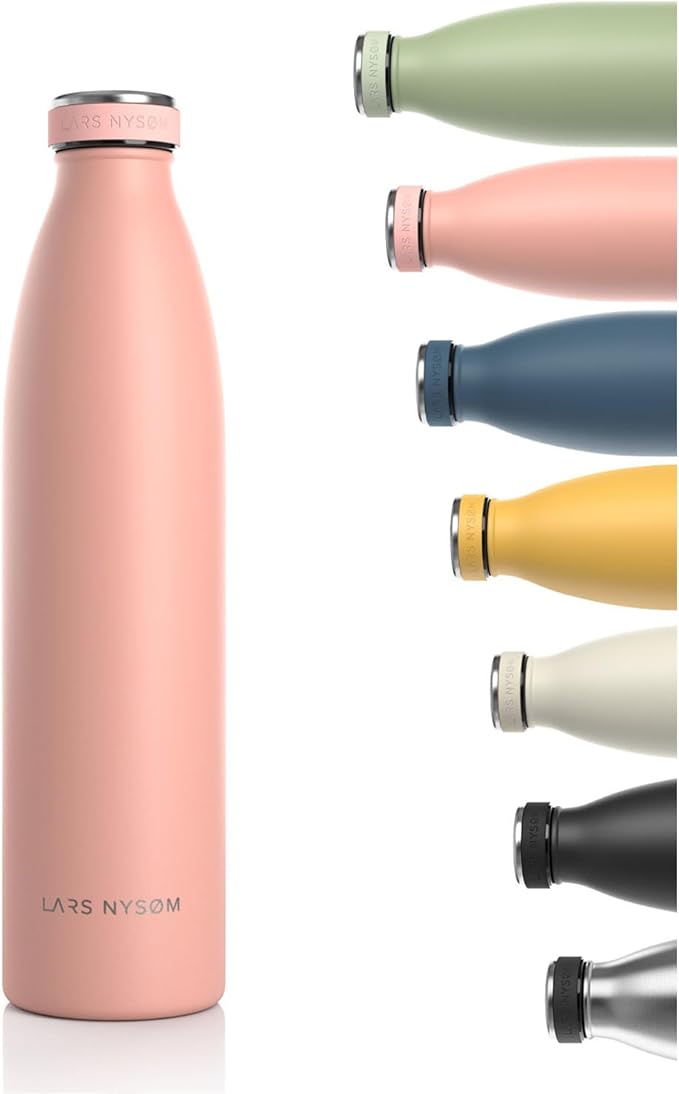LARS NYSØM Stainless Steel Insulated Water Bottle 12oz 17oz 25oz 34oz 51oz | BPA-free Insulated Thermo Flask for Hot and Cold Beverages | Leakproof Drinking Bottle (Nude, 34oz)