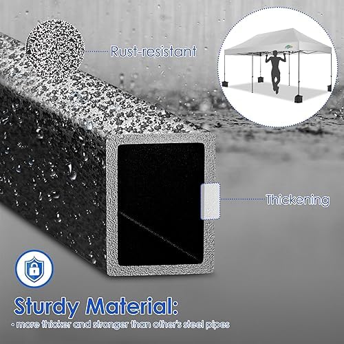 - 【Upgrade Heavy Duty Frame】10x20 commercial canopy frame is full truss construction with powder coated, durable and rustproof. The pipe diameter is 1.26'' and the wall thickness is 0.03'', while most common tents are only 0.98'' in pipe diameter and only 0.02'' wall thickness. Intermediate support pole construction can hold up to 220 lbs on a single pole and can withstand up to level 4 wind/18 mph, using the included sandbags, ropes and nails to increase the stability of the wedding tent