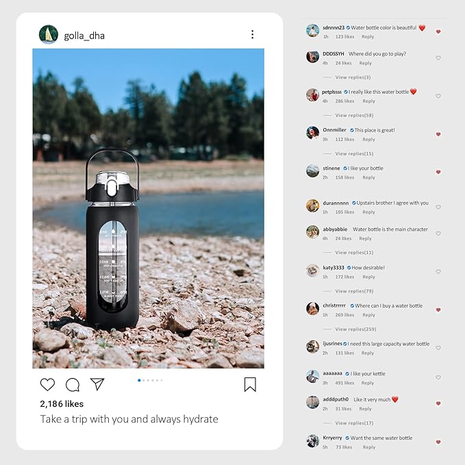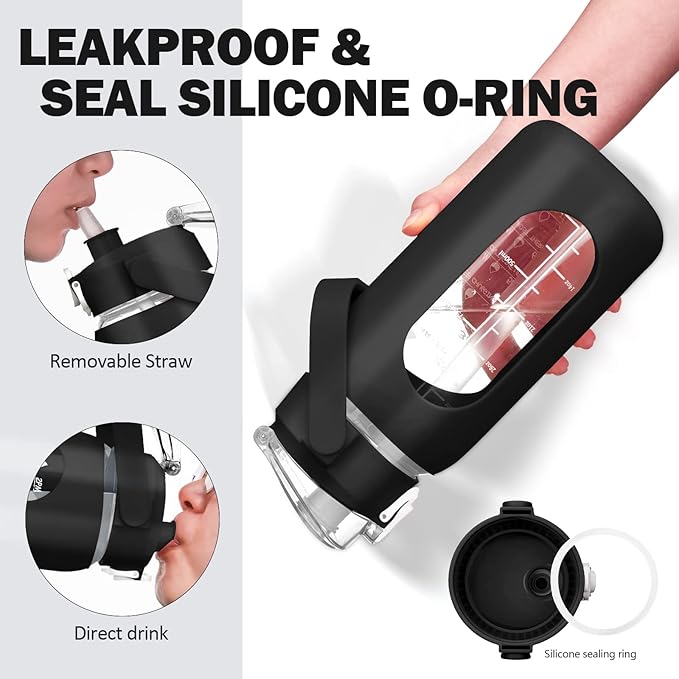 - ❤High-Quality Borosilicate Glass Bottle- This large motivationla water bottle is made of odorless, quality, borosilicate glass. Straw and lid are made of food-grade PP, BPA-free and eco-friendly.