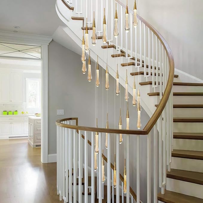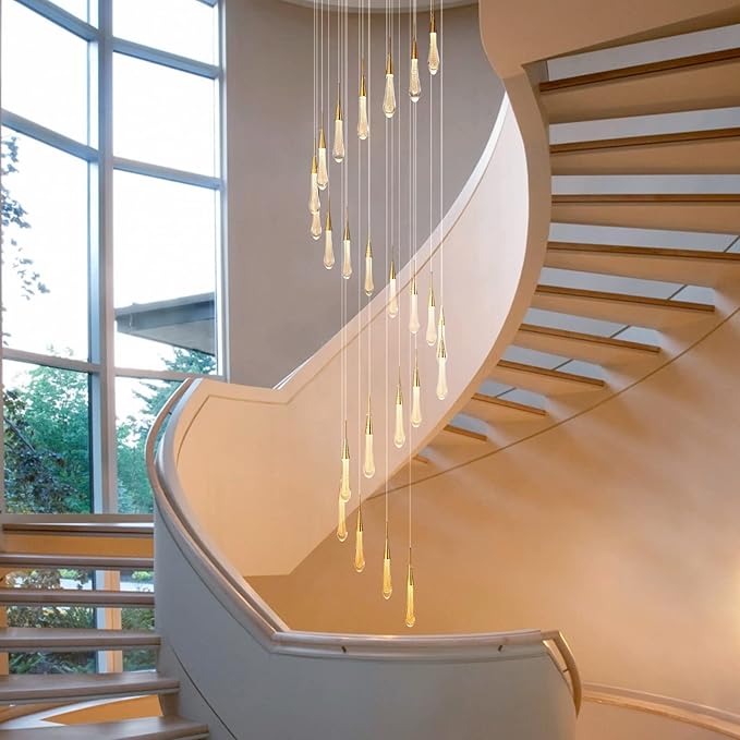- 【Widely used】This high ceiling chandelier is both modern and unique, so it is perfect for home and commercial places. Chandeliers for entryway, living rooms, halls, stairwells, hotels.