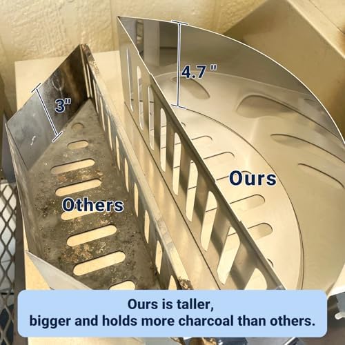 - Large Capacity - 14' L x 5' W x 4.7' H large capacity charcoal basket. Ours is taller, bigger and holds more charcoal and wood than others. Fits for most 22″ and 26″ kettle grill, compatible with weber, napoleon and other similar size model.