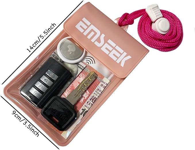 - 3.Floating Design. EMSEEK Floating Waterproof key bag can float in water if you keep enough air inside to close even full loaded. No Worry your valuables sink any more. Please test this ability first if you want it float before using in deep water.