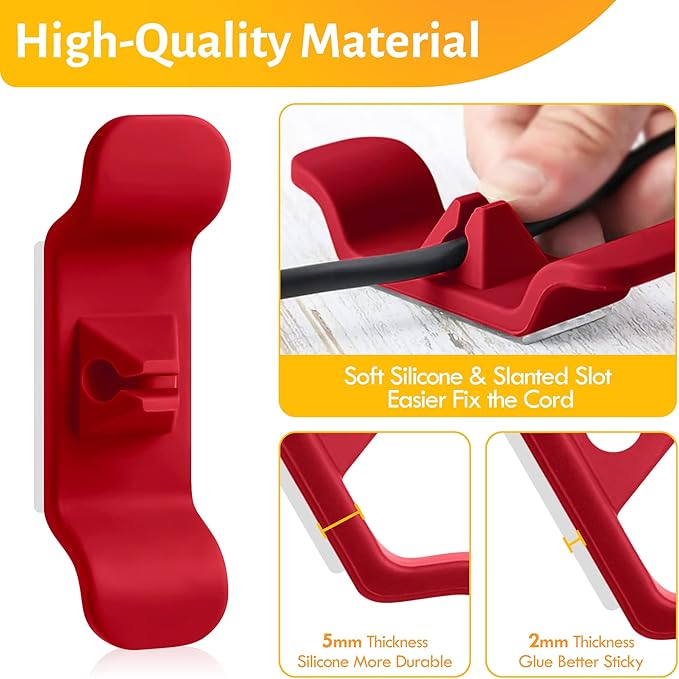 - PREMIUM MATERIAL: Each appliance cord organizer stick on is made of high quality rubber, durable and deformation resistant. The sticky adhesive pad is non-toxic, odorless, and will not leave marks on kitchen appliance surface