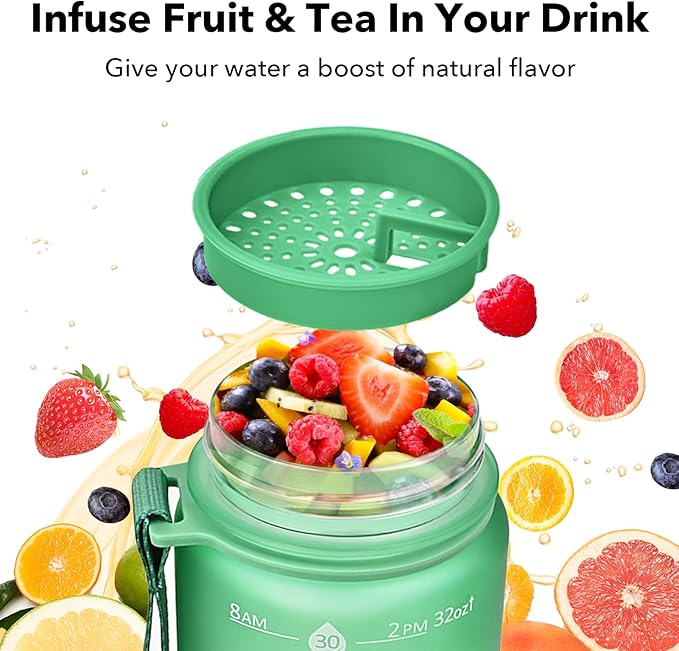 - Functional Design: The flip-top lid is equipped with a U-shaped safety lock, making it leak-proof, and can be easily opened with one hand. It is easy to infuse fruit and tea in your drink. Features a wide mouth opening for easy cleaning and ice filling.