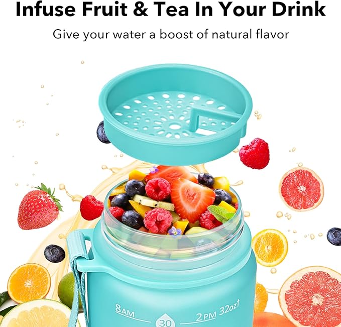 - Functional Design: The flip-top lid is equipped with a U-shaped safety lock, making it leak-proof, and can be easily opened with one hand. It is easy to infuse fruit and tea in your drink. Features a wide mouth opening for easy cleaning and ice filling.