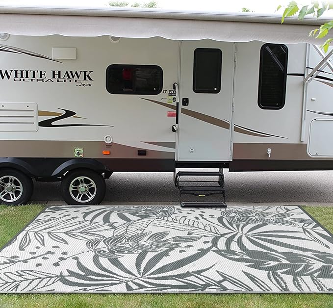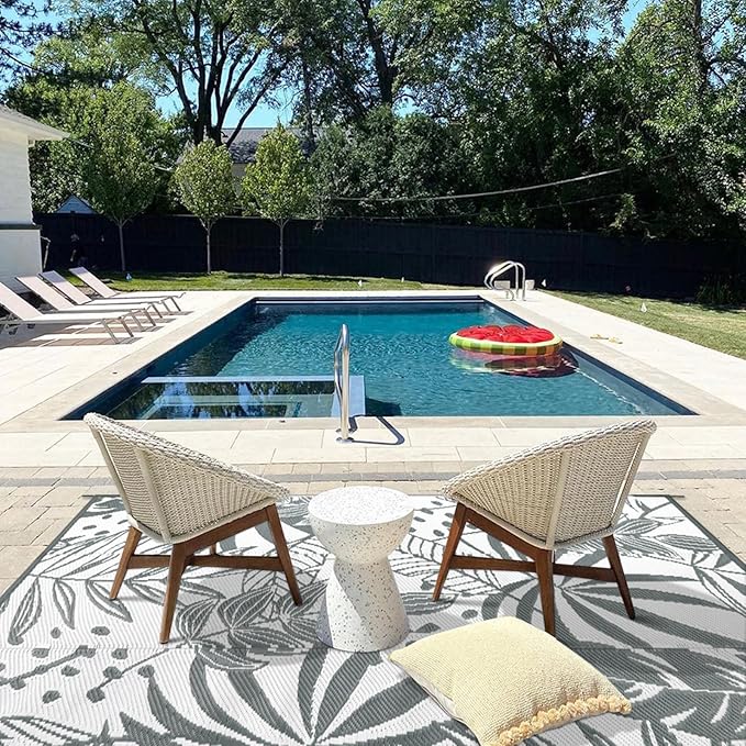 • Reversible Mat: Anidaroel waterproof outdoor carpet is designed with a double-sided pattern, either side of the mat will blend well with nature perfectly. The two shades of gray and white achieve the ultimate fusion. Tropical leaf pattern designs can create a comfy natural atmosphere for your indoor outdoor area.