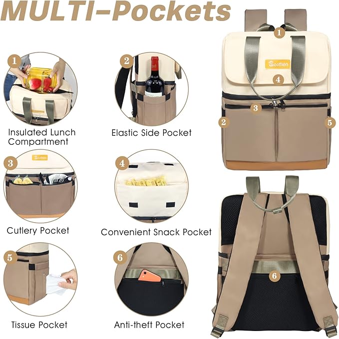 - 👜Stylish Appearance and Ideal Gift: Our Convertible portable cooler can use it as a chic tote, a hands-free backpack, making it super versatile! Arrive in style—back trolley sleeve for easily sliding over your luggage/suitcase handles, dual padded shoulder straps provide optimum comfort. With this stylish travel cooler backpack, you will get a lot of compliments. Moreover, It's a great gift idea for women, perfect for lunch, picnic, travel, hiking, camping, biking, park and Disney.