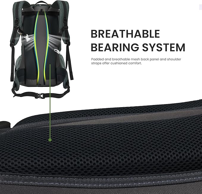 - Comfortable and Breathable: This travel backpack uses breathable mesh padding and a ventilated back system to keep your items dry and ventilate your back. The ergonomically designed structure helps to evenly distribute the weight, making it comfortable to carry while hiking.