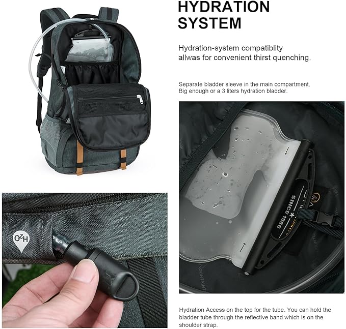 - Well-designed details: This outdoor backpack has many clever and convenient designs. The bottom compartment provides direct access to the main compartment; there is also a dedicated compartment for a water bladder (WATER BLADDER NOT INCLUDED), In addition, various shrink straps can also carry camping equipment such as trekking poles, sleeping bags and tents.