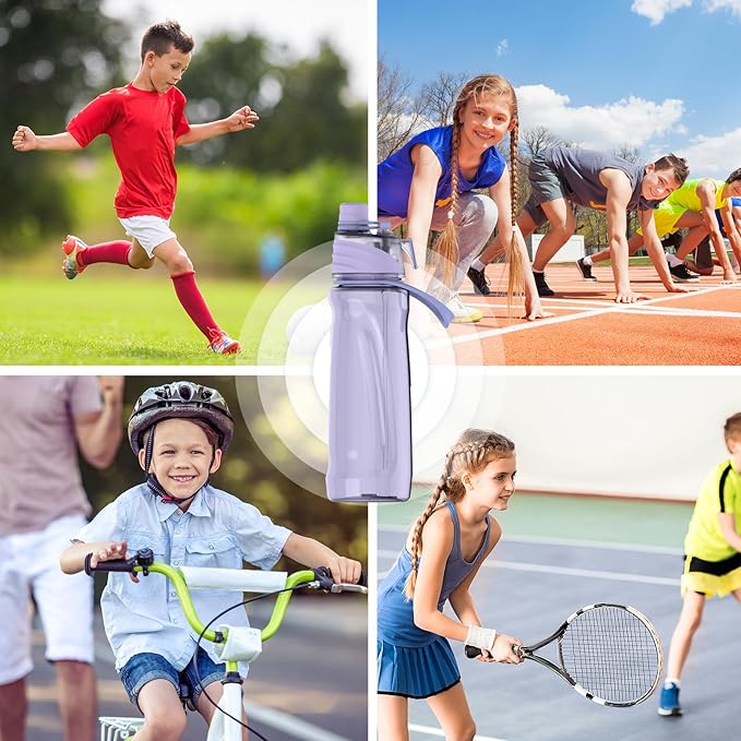 FEIJIAN Mist Water Bottle,22oz Sports Water Bottle with 2-IN-1 Mist & Sip Function, BPA-Free Plastic Water Bottles, Misting Water Bottle, Leakproof & Lightweight, Ideal for Fitness and Outdoor, Purple