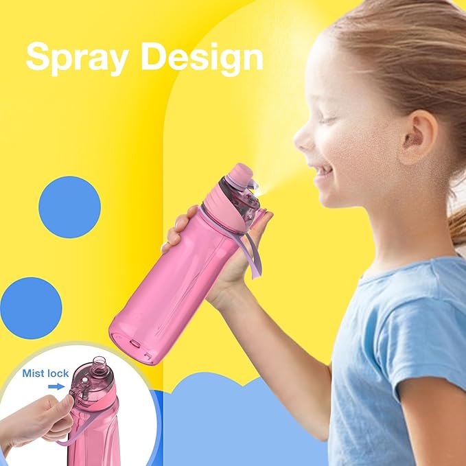 FEIJIAN Mist Water Bottle,22oz Sports Water Bottle with 2-IN-1 Mist & Sip Function, BPA-Free Plastic Water Bottles, Misting Water Bottle, Leakproof & Lightweight, Ideal for Fitness and Outdoor, Pink