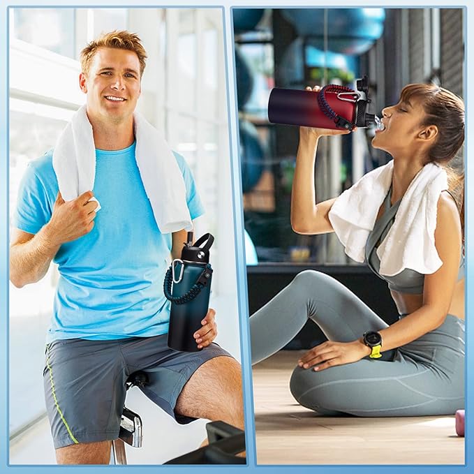 - SUPER DEAL COMBO - Buy one 32 oz insulated water bottles, get 9 accessories: 1 x straw lid, 1x Auto Chug lid, 1 x paracord handle, 2 x straws(BPA Free), 1 x carrier bag, 1 x shoulder strap, 1 x protective silicone boot, 1 x straw brush. The 32oz insulated water flask perfect to keep you stay hydrated throughout the day