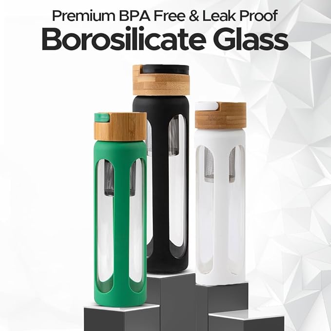 - PREMIUM BOROSILICATE GLASS- The Nuzi glass water bottles are made from high-quality borosilicate glass, ensuring a durable and leak-proof experience. Our water bottles are free from harmful chemicals like BPA, lead, and phthalates, providing a clean and pure water taste with every sip.