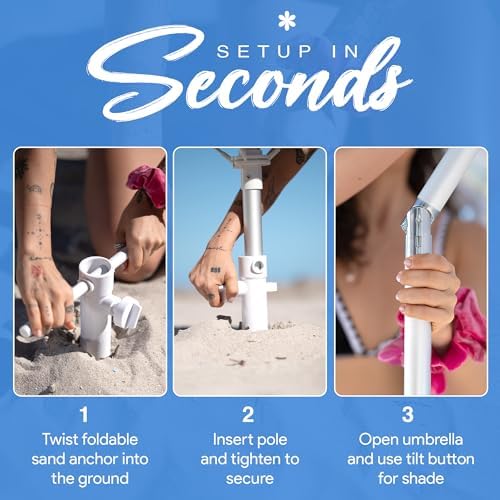 - PORTABLE: The carrying bag and separate sand anchor included with purchase makes this folding beach umbrella portable and easy to transport with shoulder strap.It's built to hold your umbrellas steady in windy conditions.This sand anchor can be folded and carried conveniently, and can be placed in a carrying bag with a beach umbrella, unlike other sand anchors that cannot be folded and carried inconveniently.We are so confident that you will like our AMMSUN Beach Umbrella.
