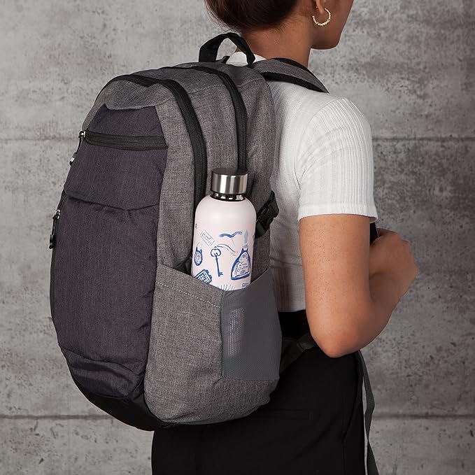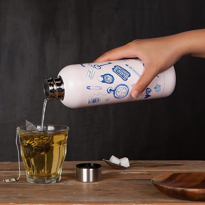 - 17-ounce reusable drink bottle for hot and cold beverages. A distinctive cylindrical shape and artist-rendered design that stand out from the rest