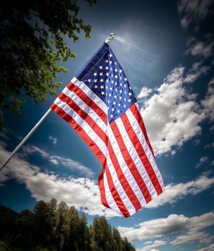 - Embroidered Stars and Stitched Stripes---Beautifully crafted, up to the top embroidery on the stars. The stars were embroidered in thick thread. Stripes are sewn together with two rows of Lock stitches for added strength. The four rows of stitches on the fly hem improves durability, avoids rapid wear and will ensure a more durable flag.