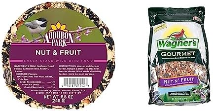 Audubon Park Nut & Fruit Snack Stack Wild Bird Food, Bird Seed Cake for Outside Feeders, 6-Pack & Wagner's 82072 Gourmet Nut & Fruit Wild Bird Food, 5 Pound (Pack of 1)