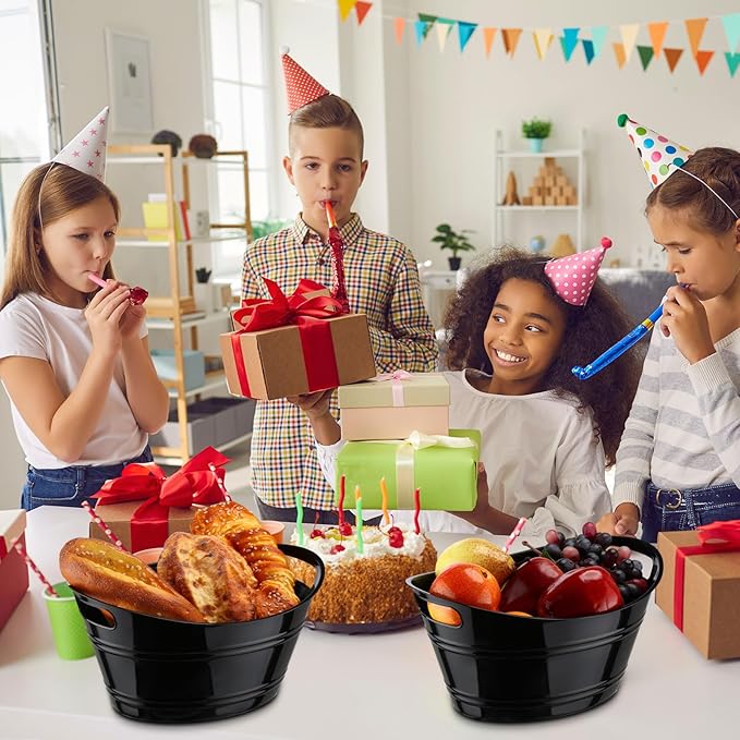 6 Pieces Ice Buckets Bulk, Plastic Ice Buckets with Handles, Oval Storage Tub, Large Capacity Ice Drink Bucket for Party Bar Wine Beer Champagne Beverage Bottle Cooler (Black,4.5 Liter)
