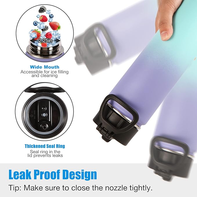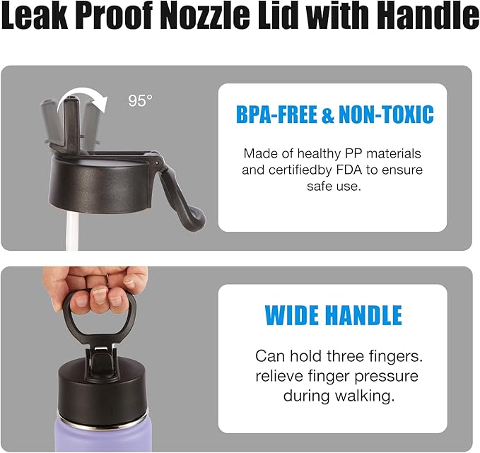 - CONVENIENT BOTTLE DESIGN: The lid is designed with a straw lid,flip-top spout makes it easy to drink,no leakage when fully closed,foldable handle,slim bottle can be easily put in your school bag,perfect fit for car cup holder,wide spout for easy refilling of water or adding ice cubes.