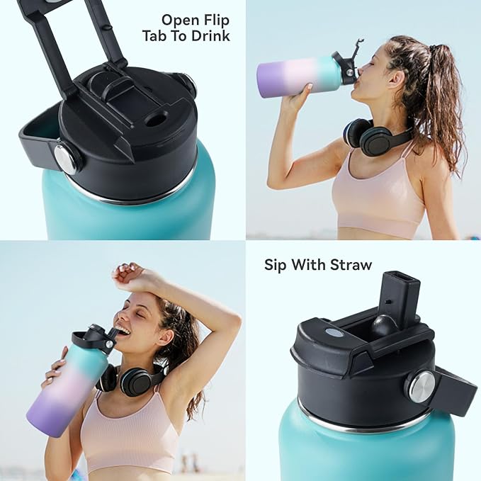 - 🧃EXCELLENT INSULATION: Our stainless steel water bottle structure is made of copper coating, which can effectively maintain the temperature of the liquid in the cup: it can store hot drinks for 12 hours and cold drinks for 24 hours. Safe and less prone to leakage, making it more convenient to carry.