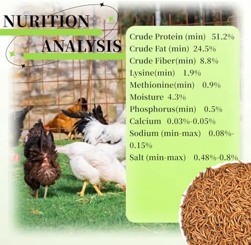 - 【Great Protein Source】Looking for a great protein source for your flocks? Our mealworms for chickens contain 51% protein, along with essential nutrients to boost immunity, enhance egg quality, and ensure robust poultry health, especially during winter