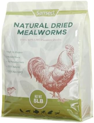 5LB Dried Mealworms, 100% Natural Non-GMO Dried Mealworms for Chickens, High Protein Chicken Feed Meal Worms for Chickens, Ducks, Turtles and Reptiles