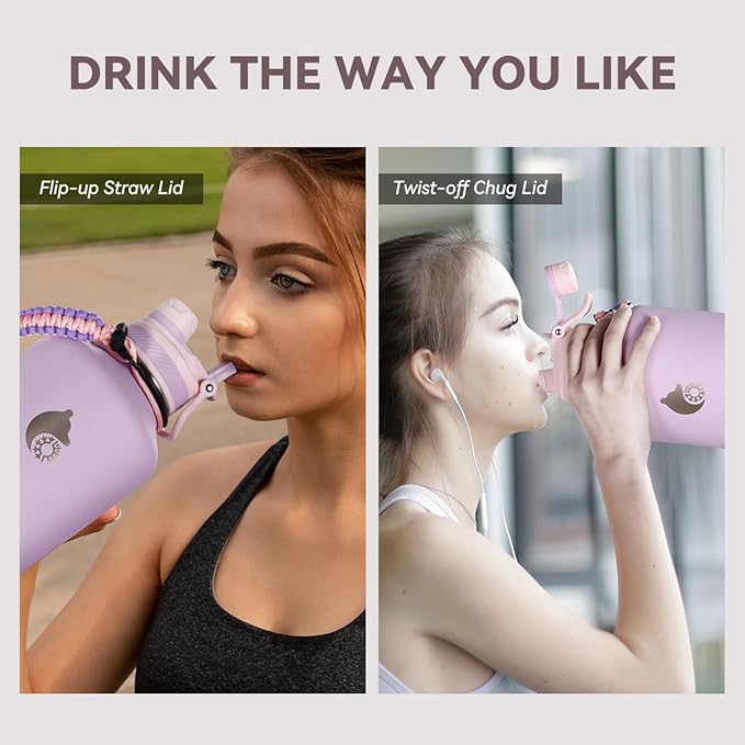 - PERFECT GIFT FOR WOMEN: This 64 oz stainless steel water bottle has unique appearance design and delicate colorful paracord handle, it is a great idea for yourself, friends, family and colleagues. Easy to carry and help them stay hydrated during sports, outdoors, traveling, camping and enjoy a healthy lifestyle.
