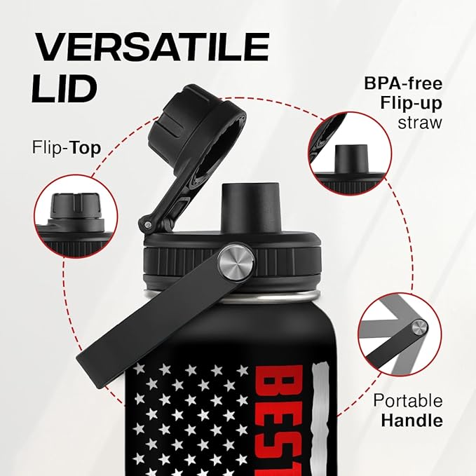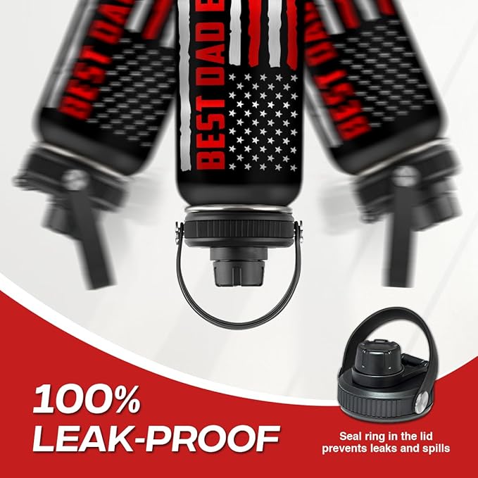 SANDJEST Best Dad Ever Water Bottle 32oz Stainless Steel Insulated Water Bottles - Gifts for Dads Daddy Father Papa from Son Daughter - Fathers Gifts for Birthday Christmas