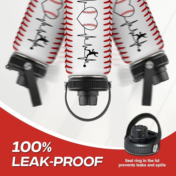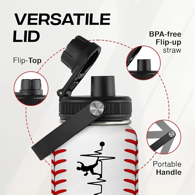 SANDJEST Baseball Water Bottle 32oz Stainless Steel Insulated Bottles for Men Women Sports Lovers Baseball Fan Players Coach - Baseball Gifts for Birthday Christmas