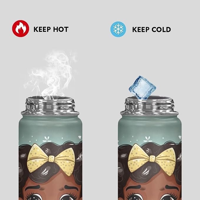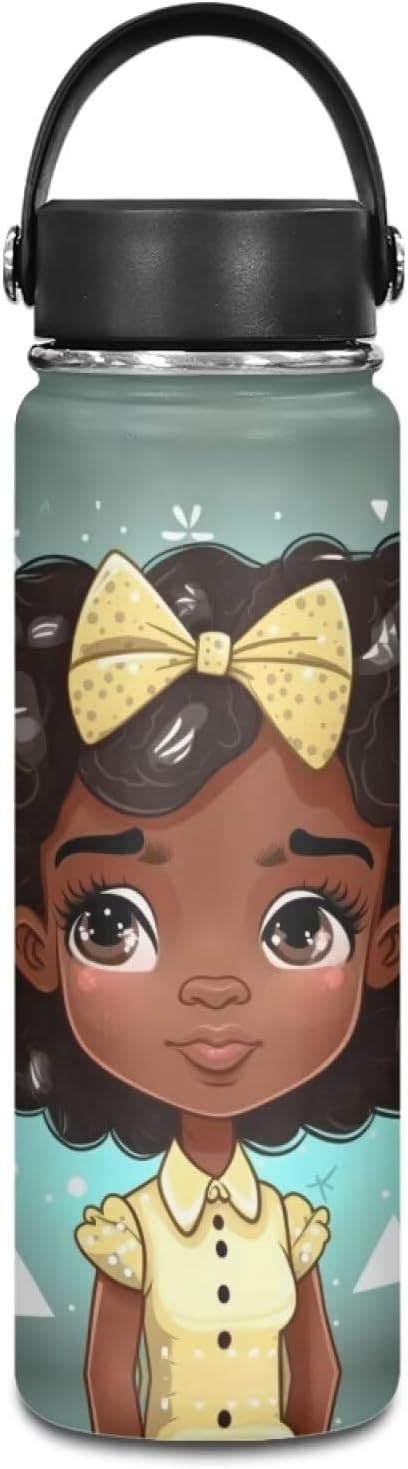 ZOUTAIRONG American Magic Insulated Water Bottle Stainless Steel Water Bottle 18 oz with Handle African Black Vacuum Flask Reusable Sports Water Bottle Travel Cup Coffee Mug
